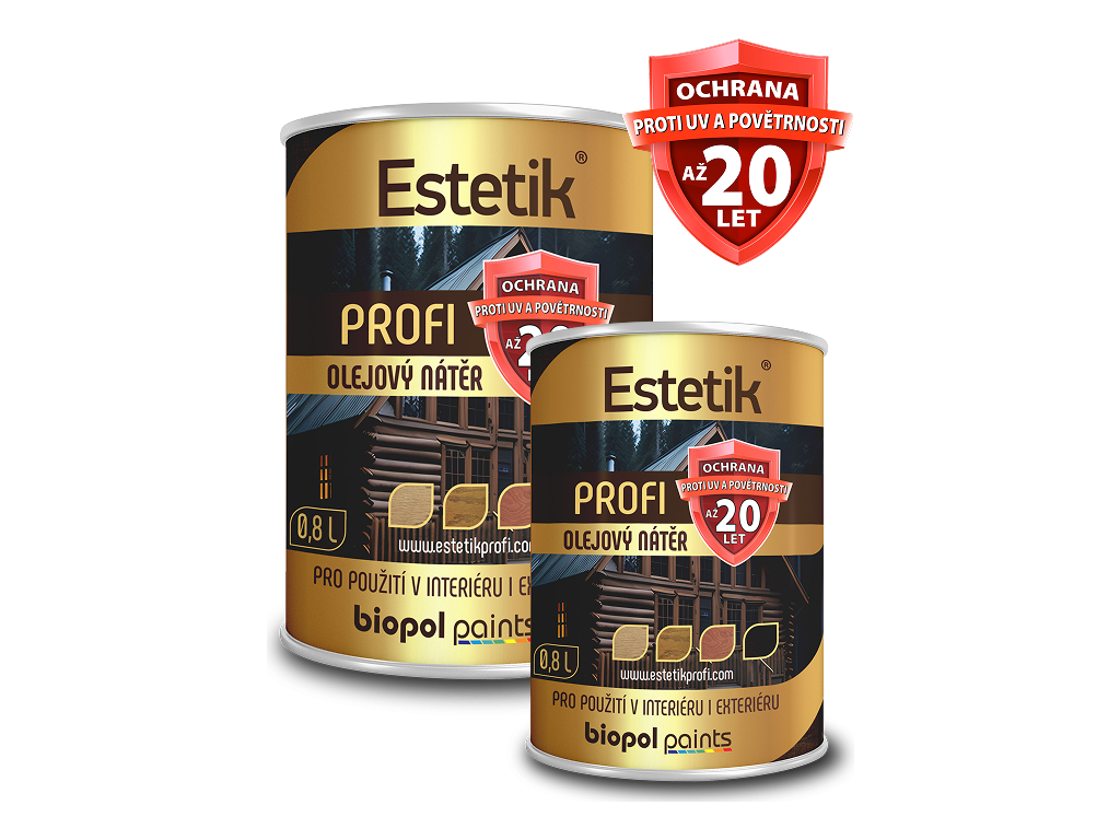 Hledáte lazuru, která vydrží — a nemusíte ji za dva roky celou strhávat? Estetik Profi je tenkovrstvá olejová lazura se speciálním alkydem a UV filtrem, která pronikne hluboko do vláken dřeva a ochrání ho zevnitř. Výsledek? Nátěr, který vydrží více než 15 let, nepraská, neloupe se a nevyžaduje odstraňování před renovací.