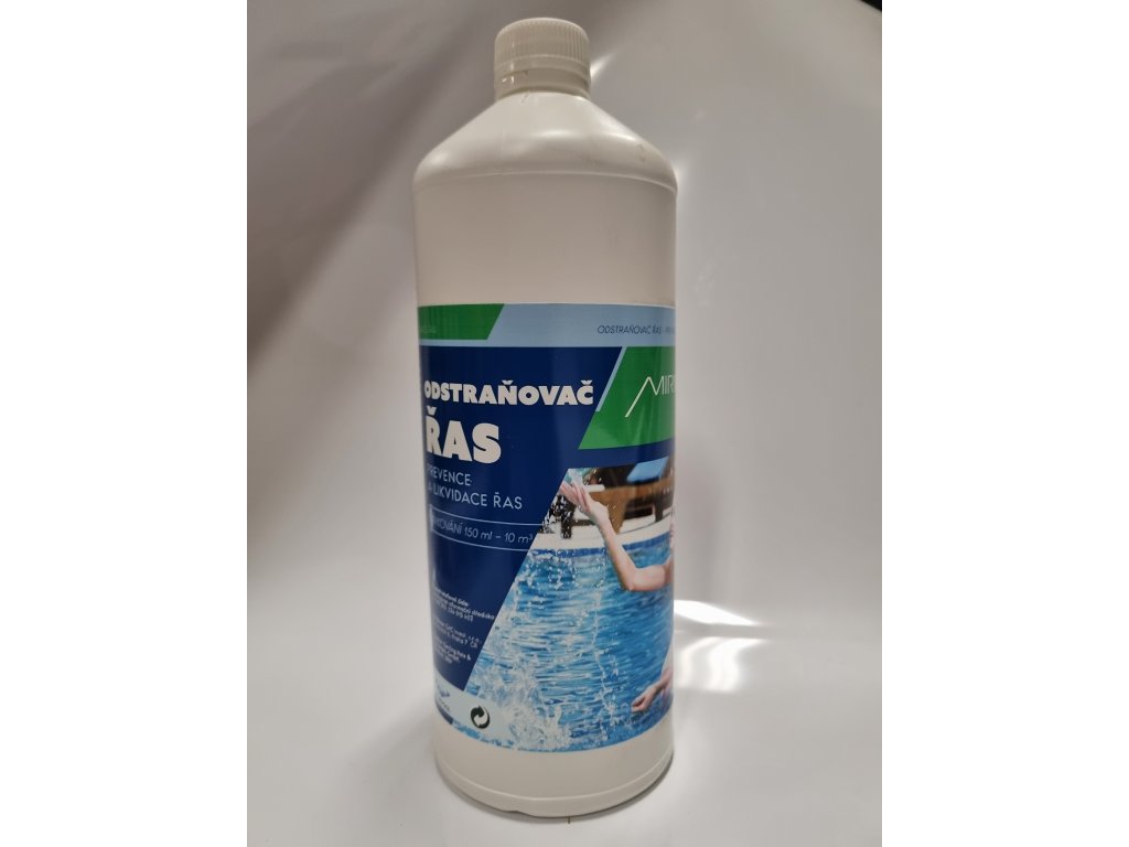 MIRMA ODSTRAŇOVAČ ŘAS je kapalný přípravek s preventivním a likvidačním účinkem, odstraňuje většinu běžných řas vyskytujících se v bazénech, má bakteriostatické účinky proti některým patogenním bakteriálním kmenům a je slučitelný s chlorovými i bez chlorovými přípravky používanými k dezinfekci vody.